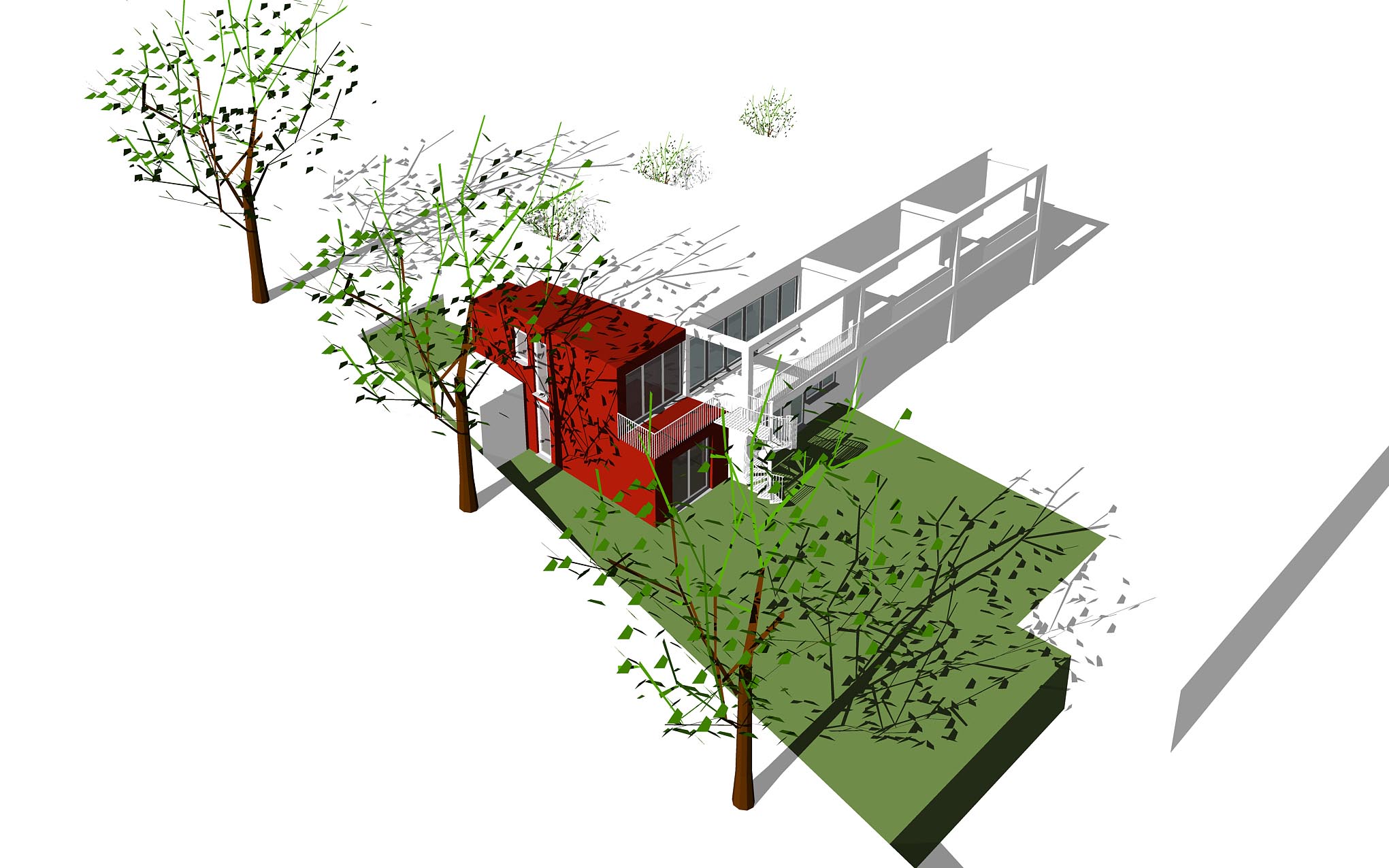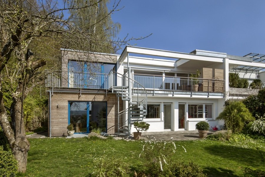 Planung eines Anbaus mit Außenterrassen sowie energetische Sanierung des Reihenendhauses aus dem Ende der 1960er Jahre